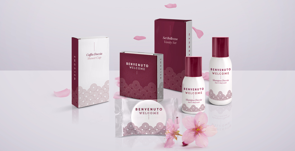 Modern hotel amenities with a floral perfume and delicate on the skin. The products of the Benvenuto guest amenities (Italian for welcome) have a simple formulation, without parabens and with a lovely smell of flowers. These essential hotel toiletries, entirely made in Italy, are especially delicate and hence perfect for every type of guest.
